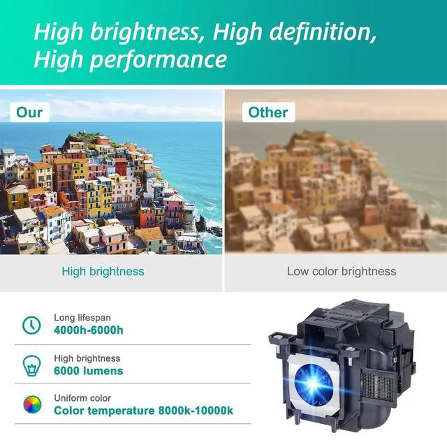 [Compatible model]Fit for PowerLite 535W 520 525W 530 97H 98H 99WH 955WH X27 2040 1040 20 45 45 740HD 640 EX3240 EX7240 EX9200 EX5250 EX5240 VS240 VS345 VS340 BrightLink 536Wi EB-2040 EB-2040W EB-2140W EB-520 EB-525W EB-525W 30 EB-EB-E535W ^^ [Long Life Time]4000 (normal) / after 4000 hours (economy) can adjust to the ECO mode to save energy and use it for a long time. We will save you a lot of money on bulb replacements. ^^ [Easy to Install]We have prepared an installation kit for you. You can use the tools we prepared for you to replace the light bulb quickly.