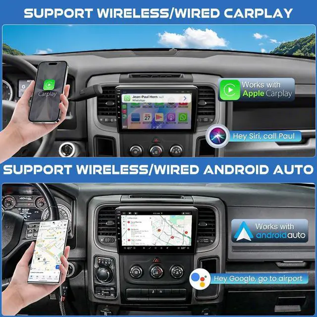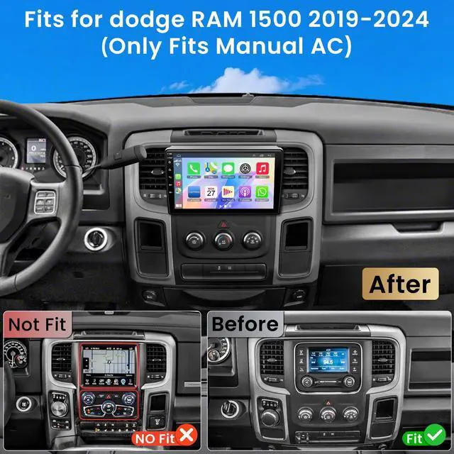 Applicable ModelsFits For Dodge RAM Truck 1500 2500 35002019 2020 2021 2022 2023 2024 Year New Style, Plug and play, easy to install. Please confirm your original car center console before purchasing, if not sure, you can contac us to confirm ^^ Built-in Wireless CarPlay and Android AutoWith CarPlay and Android Auto built-in, this car stereo Easily integrate your smartphone with wireless or wired CarPlay and Android Auto functionality, allowing you to make calls, play music, access map navigation, voice control and more ^^ GPS Navigation & WIFIThe GPS Navigation Head Unit built-in GPS module and external GPS antenna for online or offline map navigation.