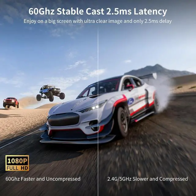 Zero Latency: The wireless hdmi transmitter and receiver transmittes in 60GHz millimeter wave with no lag (real time response), wirelessly transmittes the audio & video without loss; this wireless HDMI extender kit is ideal for gaming, presentation, meeting, education, live broadcasting etc ^^