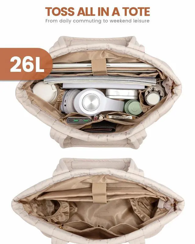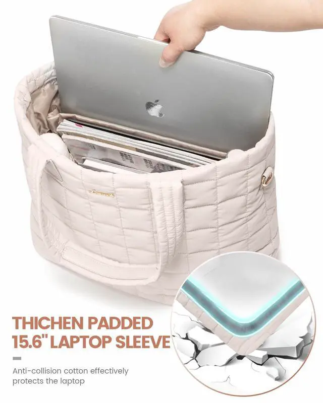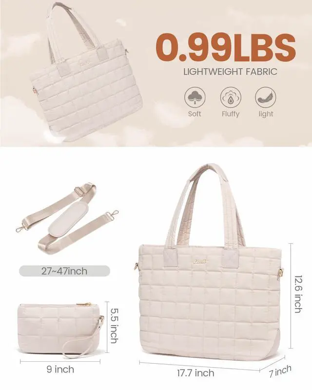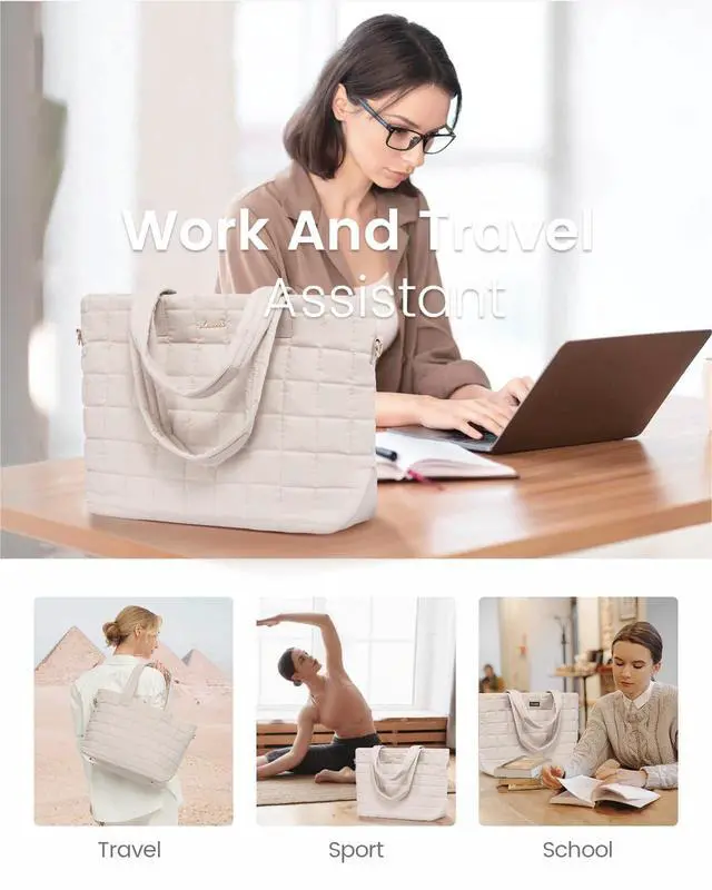 Lightweight & Travel-Ready Tote Bag: At just 0.99 lbs, this laptop tote bag for women is over 50% lighter than traditional leather totes, perfect for easy commutes and travel. The adjustable shoulder strap ensures a comfortable fit for all body types. Featuring premium down-like padding and chic diamond-quilted vegan leather, the Lovevook tote bag offers a soft, stylish look that pairs perfectly for daily commutes and travel ^^ Spacious 26L