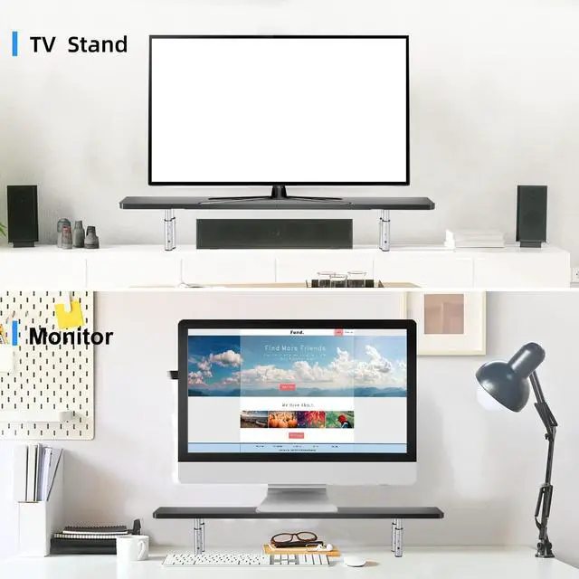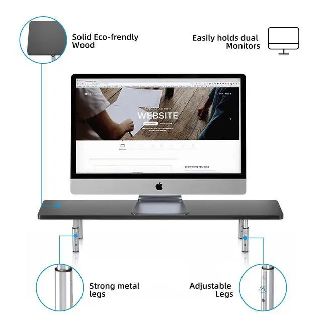 Extra Large Design - Measuring 32.2 x 7.8 x 5.5, this spacious laptop stand with Maximum bearing weight up to 22 lbs. The elegant appearance blends well with virtually any environment. ^^ Desktop Organizer - In addition to the added workspace the shelf provides, enjoy limitless storage options in the space below (approximately 3.9 ''- 5.5 in height). Rearrange your desk setup to achieve the organized appearance you need. ^^ Ergonomic - raise computer monitor, laptop or any display by 3.9 - 5.5 inches off the desk to create a comfortable viewing position and a better health sitting position which helps reduce stress on the neck and back.
