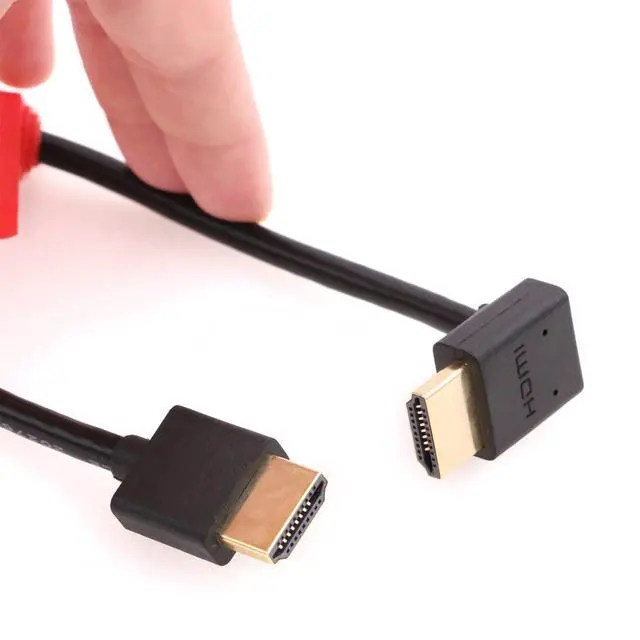High Speed straight HDMI Type A to bend down HDMI Type A Cable ^^ Gold-plated connectors, bare copper conductors, and foil-and-braid shielding for strength and reliable connectivity. ^^ HD 4K 8K HDMI Cable provides a smooth and effortless experience for connecting your HDMI-enabled device to your Apple's TV 4K, HDTV, 4K/Ultra HDTV or any other HDMI-enabled display. ^^ Suitable for use with Blackmagic Pocket Cinema Cameras, URSA G2 camcorders, Z Cam camera, Sony FS5 FS7, GH5 cameras. BM5 monitor/atomos ninja V Monitor ^^