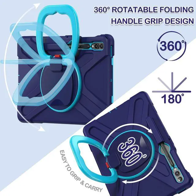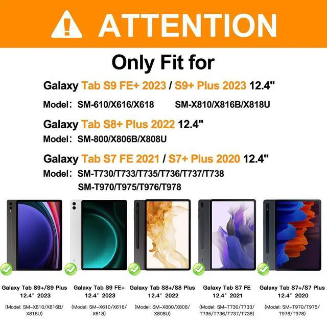 [Compatibility] designed for Galaxy Tab S10 Plus 12.4" inch 2024 ((Model: SM-X820/ X826B/ X828U)); Galaxy Tab S9 FE+ Plus 12.4" inch 2023 (Model: SM-X610 /X616 /X618); Galaxy Tab S9 Plus 12.4" inch 2023 (Model: SM-X810 /X816B /X818U); Galaxy Tab S8 Plus 12.4" inch 2022 (Model: SM-X800 /X806 /X808U); Galaxy Tab S7 FE 5G 12.4" inch 2021 (Model: SM-T730 /T733 /T735 /T736 /T738); Galaxy Tab S7 Plus 12.4" inch 2020 (Model: SM-T970 /T970 /T975/ T976/ T978) ^^ [Full Body 3-Layer Protection design] Providing full body protection prevent from drops, shocks, bumps, scratches and dirt. No worry your Tab would slip out of your kids' hands and break. Full access to all ports, buttons and cameras without removing the case. ^^ [Amazing Mul-tifunction Handle/Stand] The 360 Degree rotating Kickstand provides multi-angle viewing, offering a pretty convenient use experience for film watching, working and typing. The stand is stable enough on several different surface or as a comfortable handle for gripping and carrying. ^^ [Removable & Adjustable Carrying Strap] Portable Shoulder Strap allows to carry your Tablet conveniently when you are at work, on a trip or outdoors. You could even hang it behind the head rest of car seat or wherever you want. ^^ [Customer Service] Our Professional Service Team will solve your problems to ensure your complete satisfaction within 24 hours. Please feel free to contact us if you meet any problem such as replacement, refund, strap, installation guide.