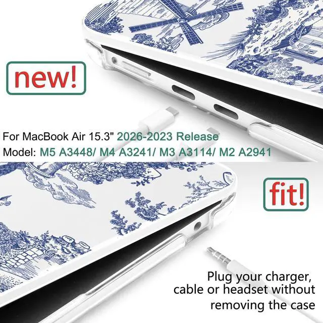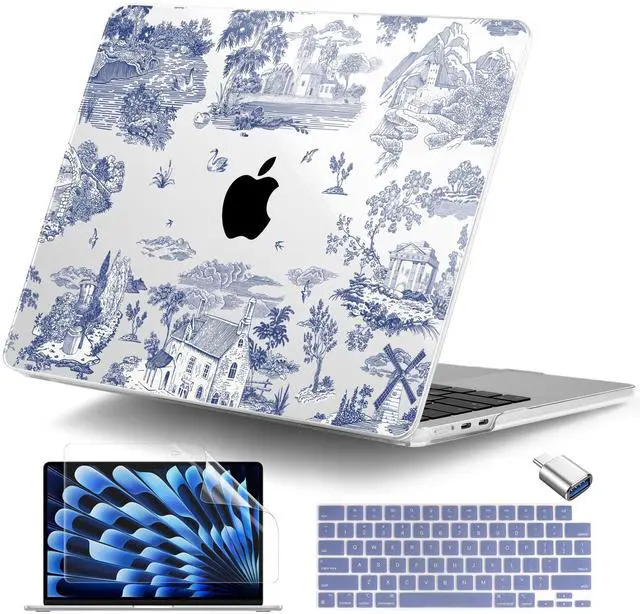 Each package includes: 1x Stylish Plastic Hard Shell Case, 1x High-speed USB-C to USB Adapter, 1x Matching Color Keyboard Cover, and 1x Clear Screen Protector to keep your device pristine and scratch-free. ^^ [Essential USB-C to USB Adapter] Boost your productivity with the included Type-C adapter. It allows you to effortlessly connect external hard drives, mice, keyboards, or flash drives to your MacBook Air. A must-have accessory for modern workspaces and on-the-go professionals. ^^ [Aesthetic Design & Precise Cutouts] Features high-definition, fade-resistant patterns with a smooth, glossy finish for a premium touch. Precisely engineered cutouts ensure full access to all ports, magnetic charging port, speakers, and Touch ID without ever needing to remove the case. ^^ [Heat Dissipation & Slim Fit] The ultra-slim, lightweight design adds minimal bulk to your laptop, preserving its sleek profile. The bottom cover is fully vented with precise slots to ensure safe heat dissipation, keeping your MacBook cool during heavy tasks.
