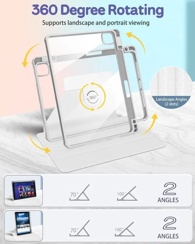 Degree Rotating Stand: This case for iPad Pro M5 13 inch 2025 features an advanced Rotating Stand design, allowing you to effortlessly adjust between landscape and portrait orientations for a full range of viewing and usage possibilities. Provide you comfortable viewing and typing experiences ^^