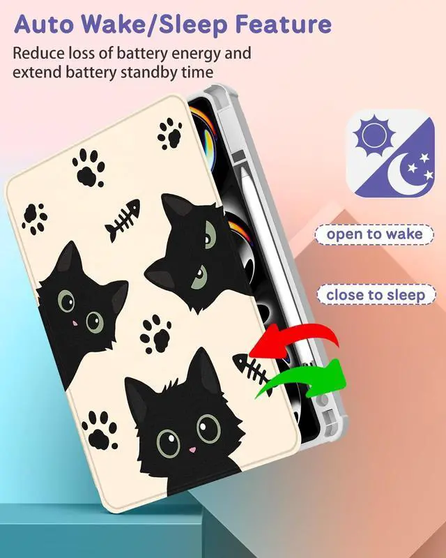 Auto Wake/Sleep Feature: Save battery life with the auto wake/sleep feature. The built-in magnetic closure instantly wakes your tablet when opened and puts it to sleep when closed, keeping your for iPad Pro M4 13 inch 2024 ready while conserving energy ^^