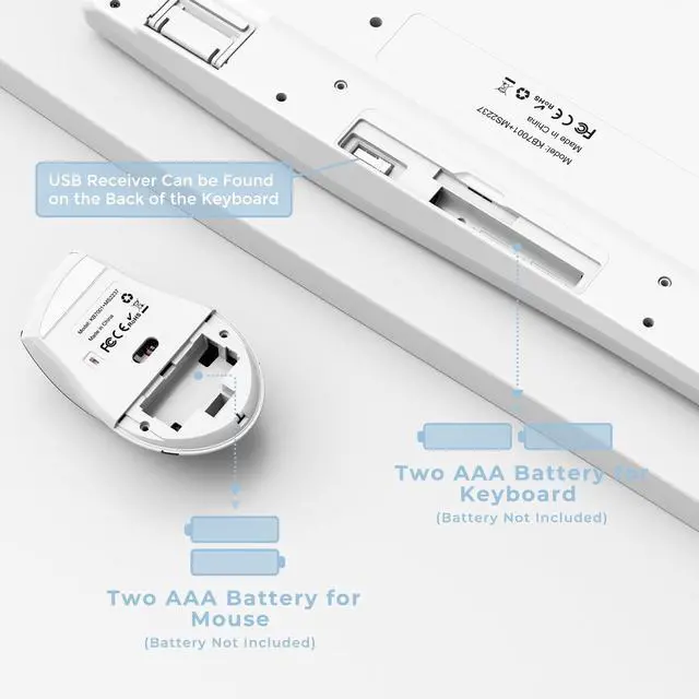 Only 1 USB RECEIVER INSERTED ON THE BACK OF THE KEYBOARD. THERE IS A ON/OFF SWITCH FOR THE KEYBOARD ON THE RIGHT SIDE, PLS MAKE SURE IT HAS BEEN TURNED ON BEFORE USING ^^ Integrated Ergonomics for Long-Lasting Comfort -- The keyboard features an integrated palm rest for maximum comfort, the shape of mouse is also comfortable and ergonomic, which feels every fingers have a place to rest, you are now ensured of good grip and long-lasting comfort ^^ Provide Everything You Need for A Smooth Typing -- The low-profile silent keys with a soft and quiet keystroke, the adjustable angle, anti-slip rubber pad, the DPI button to adjust the speed of your cursor, not even to mention the full function layout, this keyboard and mouse provides everything for smooth typing ^^ One Receiver for Both the Keyboard and Mouse -- The plug-direct receives allows the mouse and keyboard to work wirelessly within a range of 10 meters, just plug it into a free USB port in your PC or laptop and youre good to go! Both the keyboard and mouse equipped with a slot on the back to store the receiver easily when you are finished using it ^^ Full Size with Multimedia Keys and Number Pad -- Full size layout keyboard with numeric pad and isolated keys make sure that your work will be done quickly and efficiently.
