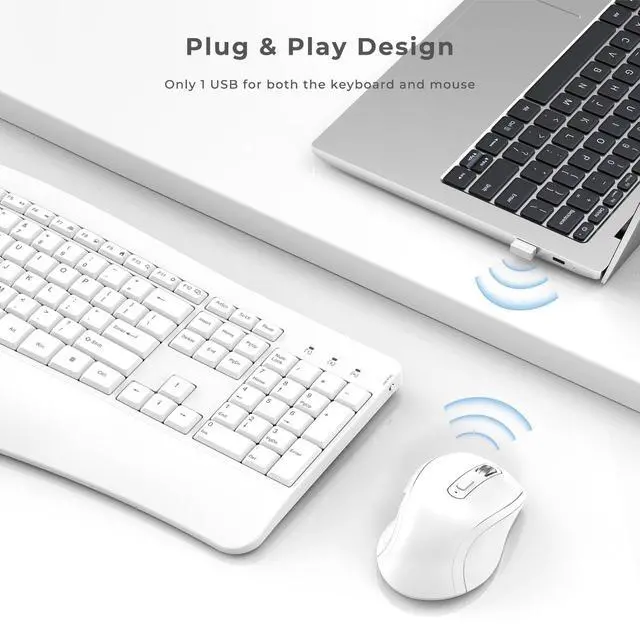 While the multimedia keys allow you to adjust the volume, start a search or open emails with just one click of a button ^^ 2.4G Wireless Stable Connection without Hassle-- The keyboard and mouse connected to the same dongle. The powerful 2.4G frequency provides a stable and strong wireless connection, you will never experience "lag" problem, just enjoy enjoy wireless typing without wire chaos