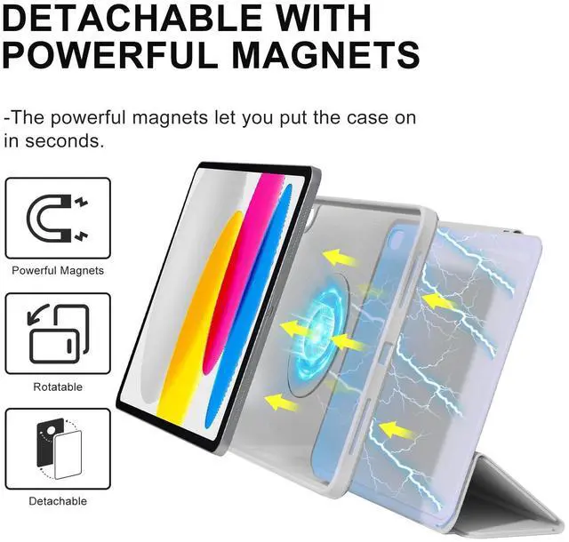^^ Versatile Viewing: The inner shell is lightweight and equipped with built-in magnets. You can magnetically attach the iPad to the outer shell or any iron metal surface, such as a refrigerator. The outer shell adopts the classic tri-fold design stand, supporting 9 different folding ways for various viewing angles.