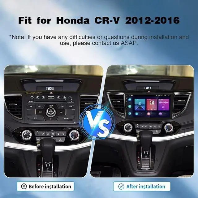 FitmentOur HD car radio stereo is specifically designed for Honda CRV 2012 2013 2014 2015 2016 with 10 inch touch screen radio, ensuring a fit and seamless integration with your vehicle. Please check the year, dimensions and shape of the center console of your vehicle before purchasing ^^ Android 13.0 System & Car Radio Multimedia PlayerCar radio player has the latest Android 13.0 operating system 2GB (RAM) +32GB (ROM), powerful core processor, ensures smooth operation and faster response. Our 10 inch touch screen stereo has a larger and clearer screen, giving you a wonderful visual experience.