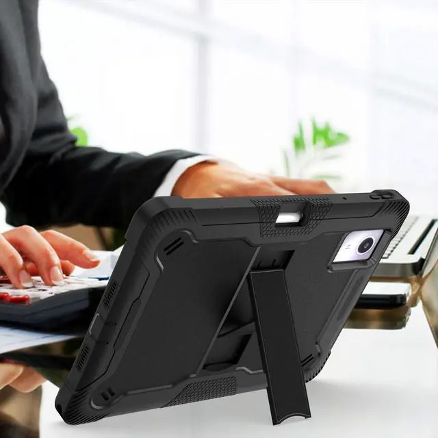 DWaybox tablet case exclusively designed for Lenovo Idea Tab Plus 12.1 inch 2025 Released. NOT compatible with any other devices. Please kindly check the model number before purchase. (1) This tough protective case has been designed for those with an active lifestyle. It provides great shock and impact absorption thanks to its lightweight silicone with a precisely positioned hard skeleton for added protection. (2) The hard attachable exoskeleton doesn't just add strength to the silicone shell, but features an ergonomically designed stand that pulls out to give the perfect viewing angle for watching media, web browsing and reading.