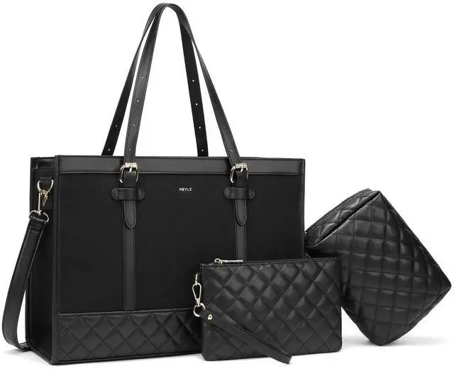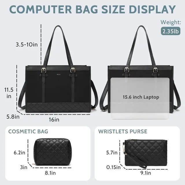 of womens laptop bag: 16"L x 11.5H x 5.8D. Also includes 1 x makeup bag and 1 x clutch purse is compact enough to fit in your phone, wallet, makeup, passport, etc. The dedicated laptop compartment provides maximum protection for your Computer.