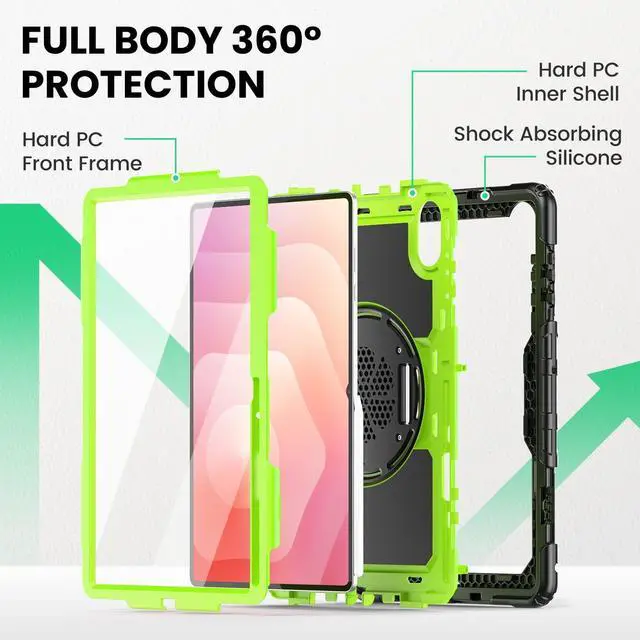 Stand and Handle: The case comes with a stable stand and 360 degree rotating handle, making it easy to use tablet, for anything from video calls to watching movies; provide full protection for your tablet screen with a built-in screen protector. ^^ Convenient and