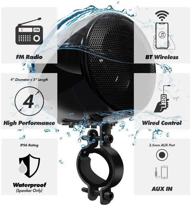 ^^ Motorcycle Speakers Waterproof: IP56 water-resistant design and high power speakers make your music rain or shine.
