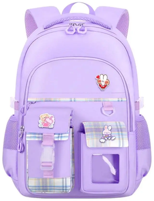 MININAI Cute Backpack for Teen Girls Kids Kawaii Bookbag Elementary Middle School Student Back Packs Aesthetic Travel Daypack Ages 6-8 8-10 10-12 (Purple,S)