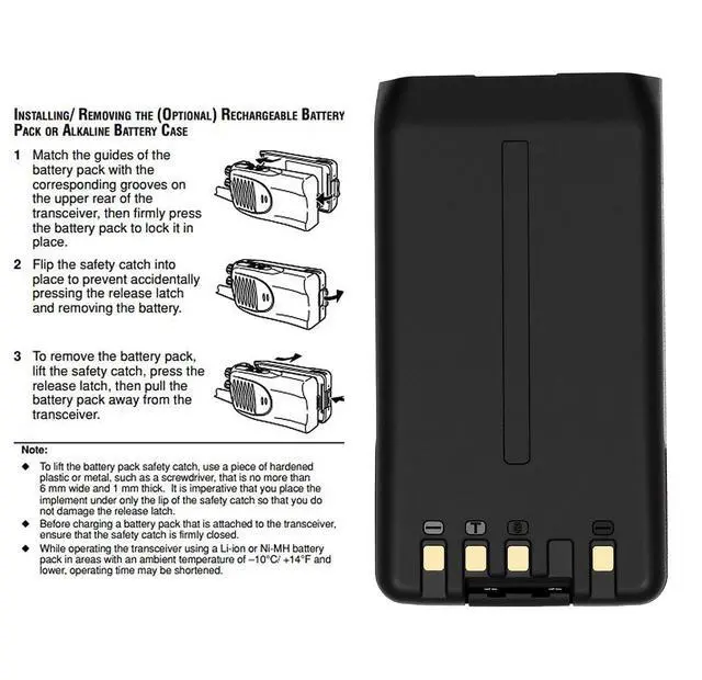 2000mAh High Capacity, Longer Battery Life Utilizes high-quality lithium-ion cells with a capacity of up to 2000mAh / 14.80W h and a voltage of 7.4V. Compared to ordinary batteries, it provides longer talk and working time, ensuring the walkie-talkie remains operational in scenarios such as wilderness exploration, security patrols, or construction, reducing the inconvenience of frequent charging. ^^ Wide Compatibility, Precise Replacement Manufactured strictly according to original dimensions ( 115.00 x 54.00 x 17.70 mm), perfectly compatible with Kenwood NX and TK series walkie-talkies. Directly replaces original models KNB-24, KNB-24L, KNB-35L, KNB-55L, KNB-56N, KNB-57L, KNB-78L, and KNB-79LC.