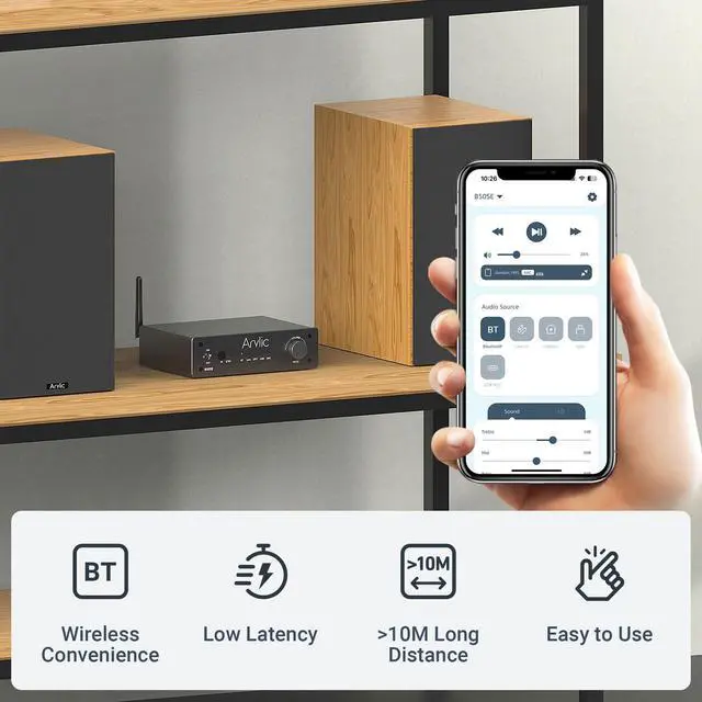 Powerful amplifier and high-quality sound: Elevate your home audio experience with the B50 SE Bluetooth Stereo Amplifier. Its powerful 50W x 2 output can easily drive bookshelf, tabletop, in-wall, or other passive speakers. B50 SE delivers rich, clear and balanced sound and adapts an advanced TPA3116D2 amplifier chip to ensure accurate music reproduction with minimal distortion.