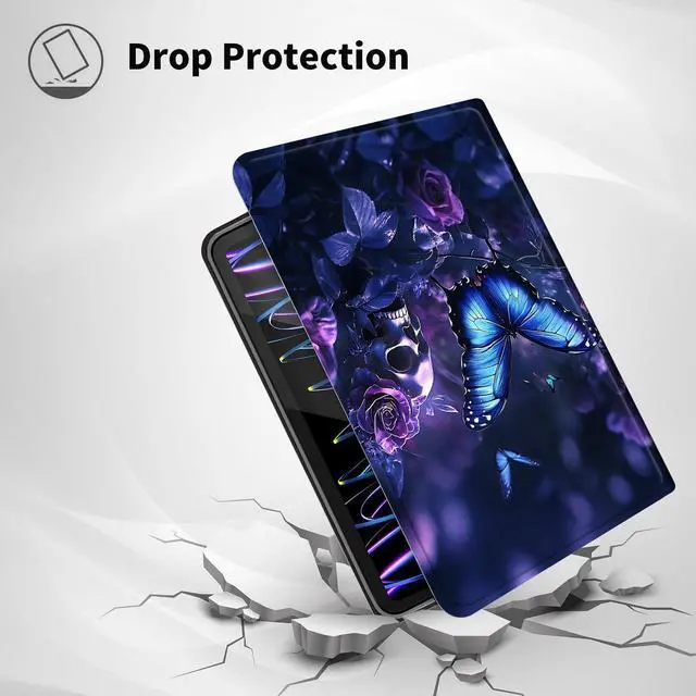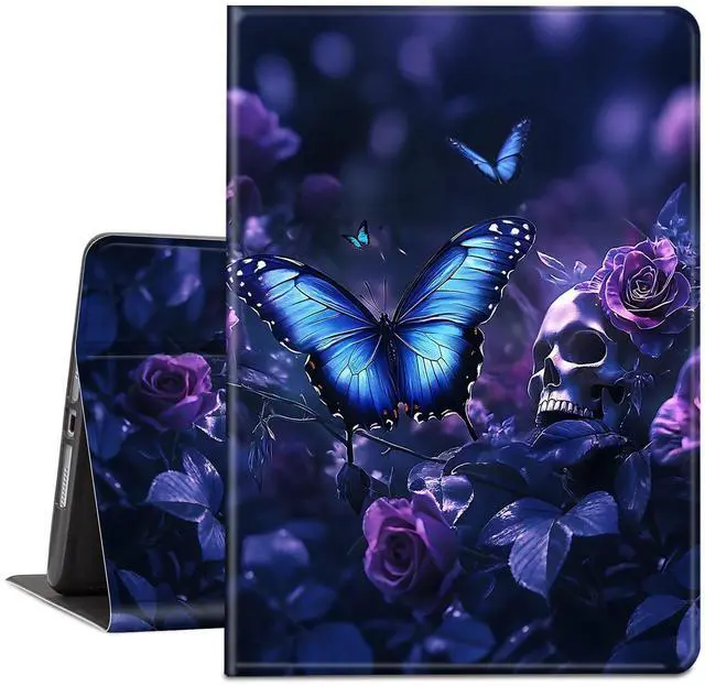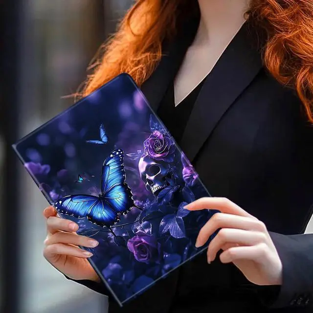 TSNJTBDL Case for Kindle Paperwhite 12th Generation 7" & Kindle ColorSoft Signature Edition PU Leather with Auto Sleep/Wake, Slim Lightweight Protective Cover Blue Butterfly Skull