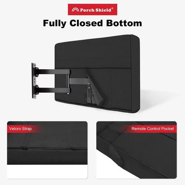 ^^ Installation - Velcro at the bottom for easily installing and removing. With the velcro firmly fastened, Outdoor TV cover will provide your patio TV with full protection and let outside television looks alomost like new. ^^ Pocket - Side pocket but not back pocket. Easy to place the remote inside its pocket of outdoor TV cover when you turn off the TV.
