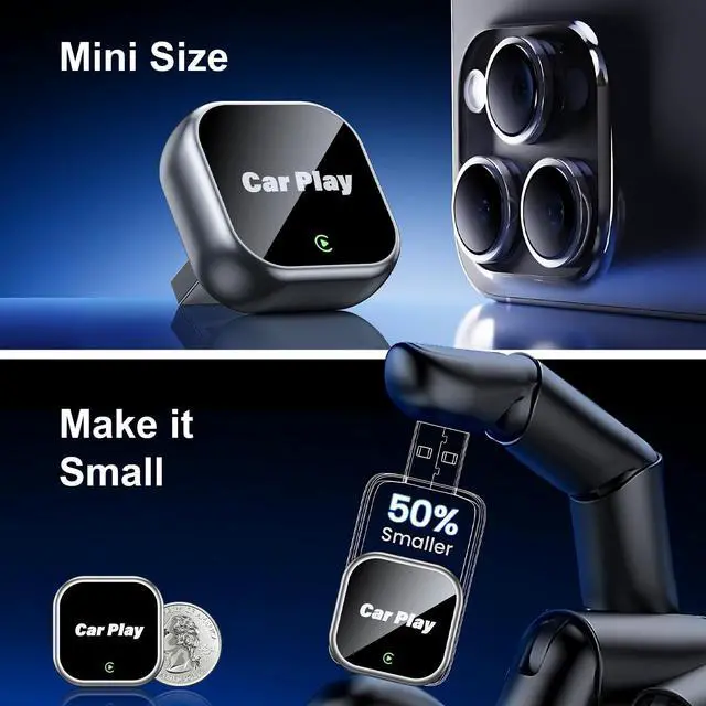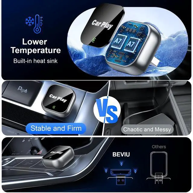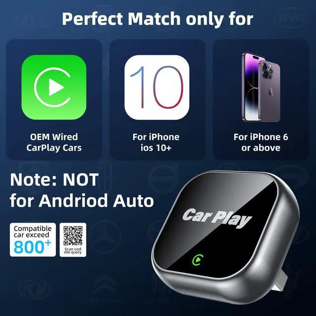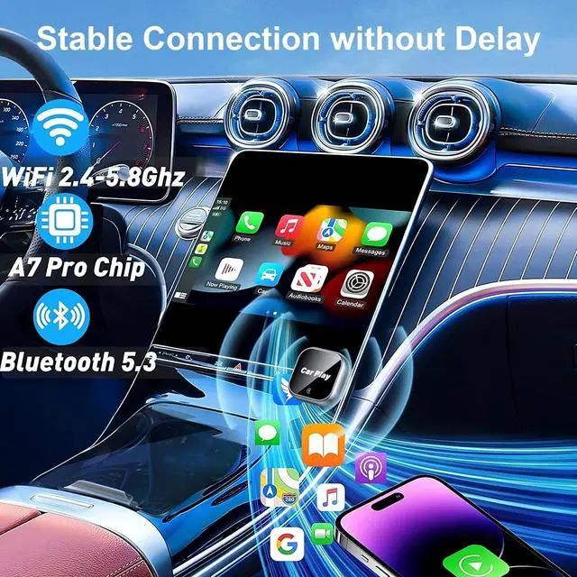 Reliable, sleek, and makes the driving experience smoother and smarter ^^ 2025 Upgraded ChipThis wireless car adapter adopts the 2025 highest-end A7 chip technology, leading most of the wireless car on the market, smooth to use, experience an extraordinary sense of speed. This mini dongle has a built-in heatsink to keep it cool in high temperatures. Eliminate the trouble caused by connection interruption, fast response 0 delay ^^ Wide CompatibilitySuitable for 98% of car models on the market. Make sure your car is the model that comes with wired carplay and is the original original screen.