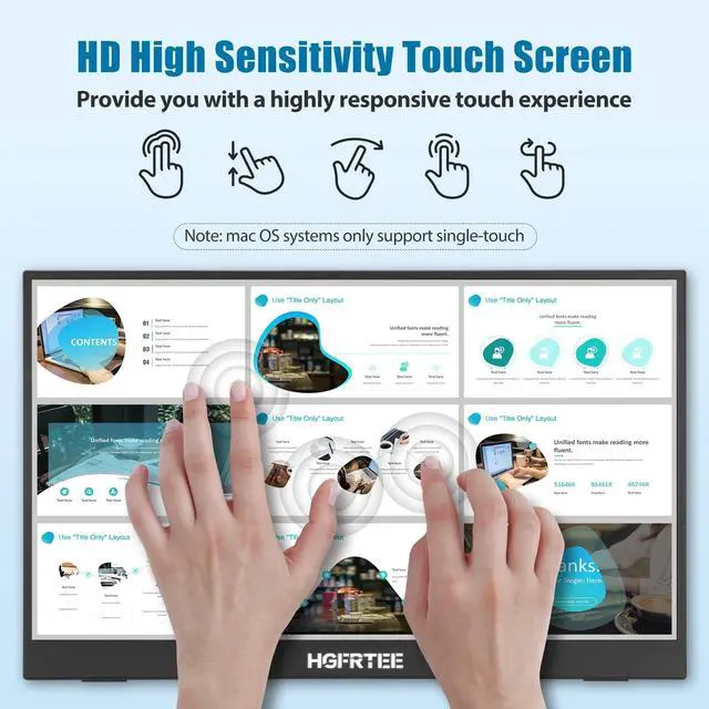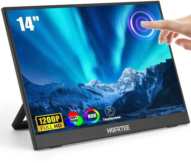 FHD IPS HDR Portable Display - 14 inch portable laptop monitor with 1920*1200 resolution, advanced IPS screen with 178 full viewing angle, it renders accurate and bright color, draws you into the video or game with lifelike colors and amazing detail. Moreover, combined with HDR technology, the monitor is equipped with blue light reduction and flicker-free technology, ensuring a comfortable viewing experience even during long periods of use and reducing eye strain ^^ 10-Point Touchscreen Portable Monitor - It is compatible with Windows and Android systems, (for MacOS systems, it only supports single-touch), allowing you to add touch functionality to your laptop, by simply connecting it via the Type-C Full-function interface.