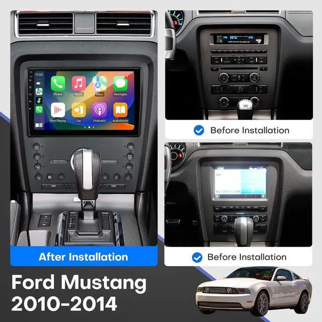 Car Radio Stereo for Ford Mustang This car stereo radio is designed for Ford Mustang 2010 2011 2012 2013 2014. UPGRADED Android 13 operation system + 8 Core CPU + 4G RAM + 32GB ROM with enhanced fluency, compatibility, and privacy. Equipped with a 10.1 -inch large screen, you can better control this machine. 100% standard size, no need to purchase additional accessories, just follow the installation instructions to make your car a new look. ^^ CarPlay & Android AutoUpgrade your drive with seamless smartphone integration! The car radio supports both Apple CarPlay & Android Auto via wired or wireless connection.