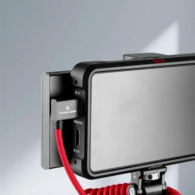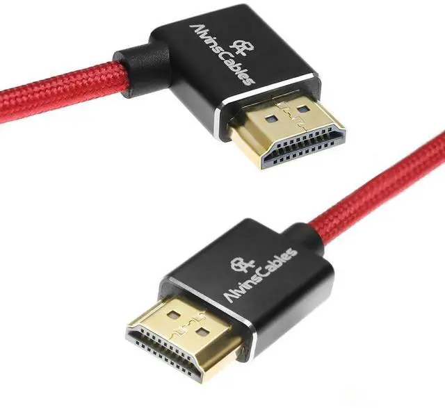 Alvin's Cables 8K HDMI 2.1 High-Speed Cable 8K@60Hz 4K@120Hz Braided Coiled Cable for Atomos Ninja,for Feelworld,for Sony FS5 FS7 FX9,BMPCC,for Canon C300 C500,Right Angle Red