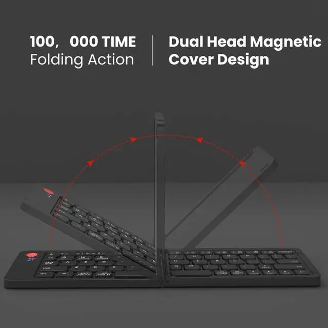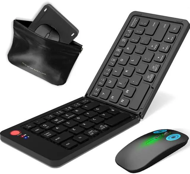 Perfect for travel and business trips. ^^ Multi-System Compatible The Bluetooth keyboard works seamlessly with iOS, Android and Windows. Maintain a stable connection and provides fast response to devices within 10 meters of operation. Compatible with a variety of devices, including Apple iPad Air, iPad 4/3/2, iPad Mini 4, iPhone X/8/7/6, Galaxy Tab, Galaxy Note, Surface, Kindle, and other Bluetooth devices. ^^ Quite Typing and ClickExperience an ultra-quiet working environment with our foldable bluetooth keyboard featuring quiet scissor switches and low-profile keys, paired with a noise-reduced mouse.