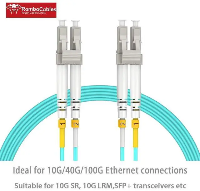 RamboCables OM4 LC-LC optic fiber patch cables saving more space for your high density cabling in data centers, enterprise networks, telecom room and any places patch cables are needed. ^^ Transmission DistanceOM4 LC to LC fiber patch cables have a 4700 MHzkm @850nm bandwidth, allow for 10Gb Ethernet transmission distance of 400Meters at 850nm wavelength; 40Gb Ethernet transmission distance of 350Meters at 850nm wavelength; 100Gb Ethernet transmission distance of 125Meters at 850nm wavelength. ^^ Why to ChooseOM4 LC to LC multimode fiber optic patch cables are Constructed with LSZH environmentally friendly Jacket.