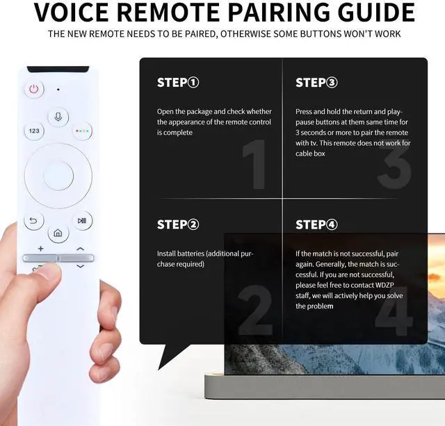 Easy Pairing Press and hold the return and playpause buttons at them same time for 3 seconds or more to pair the remote with tv. This remote does not work for cable box.