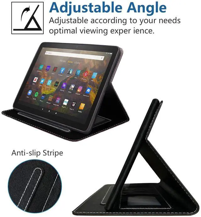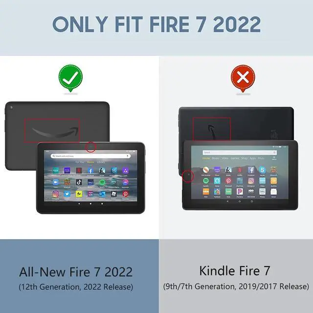 COMPATIBILITY Specifically designed for All-New Kindle Fire 7 tablet (7", 12th generation, 2022 release); CAN NOT FIT Kindle Fire 7 Tablet (9th/7th generation, 209/2017 release). Please Note!!! ^^ FULL PROTECTION Fire 7 (2022) tablet case 12th generation was made of premium synthetic leather exterior and soft microfiber anti-slip synthetic interior, soft and durable, keep the screen prevent from finger prints, dirt, and scratches. Durable safety material ideal for kids and adults. ^^ STAND DESIGN Convenient stand position for watching movie or typing, and offer a cozy angle to view and let your hands free.