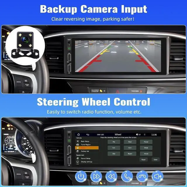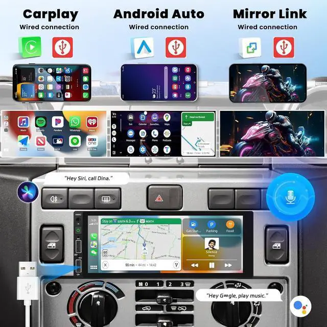 Compatible with Apple CarPlay & Android AutoSingle din 6.86 inch touchscreen car radio audio receiver with Apple carplay siri voice control or Android Auto assistant, you can use many apps on this 1 din car media player, such as phone calling, GPS navigation, video, music, emails etc. Focusing on your driving with carplay or android auto voice control function