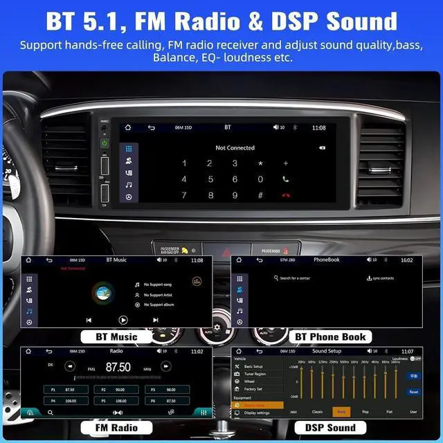 Hands-Free Bluetooth, FM Radio, EQ Sound FeatureSingle din bluetooth car stereo support hands-free calling, wireless Bluetooth audio streaming, answering and making phone calls with no distraction, be safer and convenient! FM radio with 18 preset stations, you can adjust the radio frequency to get real-time information, such as news, music, sports and weather broadcast