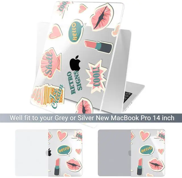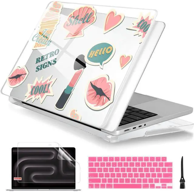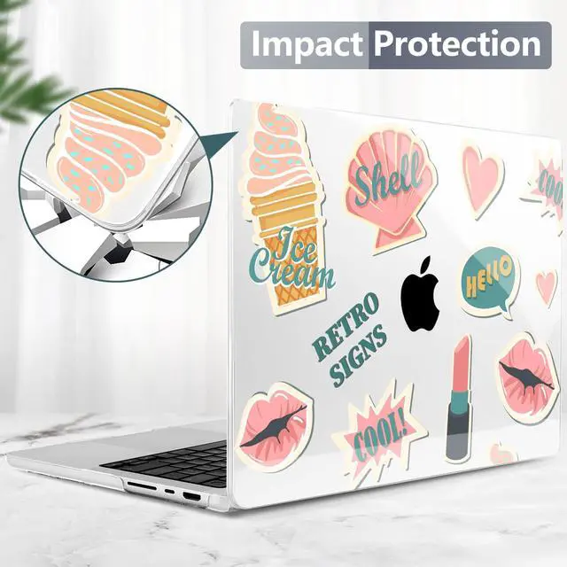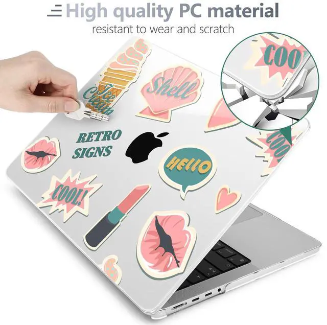 Includes: 1x High-Gloss Hard Case (Top & Bottom), 1x Matching Silicone Keyboard Cover (protects against dust/spills), 1x HD Screen Protector (anti-scratch), and 1x Keyboard cleaner. ^^ "SECOND SKIN" AESTHETIC & 1.2MM SLIM PROFILE Weighing only 280g with a profile of just 1.2 mm, this case adds robust protection without the bulk. The high-gloss, semi-transparent finish creates a premium glass-like look, allowing the Apple logo to subtly shine through the specific pattern, blending technology with art. ^^ PROFESSIONAL HEAT DISSIPATION Designed for the fanless MacBook Pro. The bottom cover features precision-cut ventilation grilles to promote natural airflow and heat release. Four raised anti-slip rubber feet increase desk grip and create an air gap for better cooling performance during long work sessions. ^^ DURABLE & SCRATCH RESISTANT Crafted from high-grade polycarbonate. The snap-on design with non-invasive micro clips makes installation easy and safe (won't scratch your bezel). Effectively protects your device from fingerprints, scrapes, drops, and daily wear while keeping all ports fully accessible.