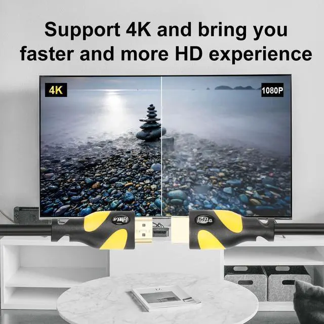 Postta HDMI Cable can compatible with Blu-Ray player, PS3, PS4, XBOX 360, DVD Players, 3D TV's, Computer, Home Entertainment device and other HDMI-compatible device. Product FeaturesCable use 24K gold plated connectors and high-quality PVC material, with environmentlly-friendly, wear-resisting and aesthetic features to ensure the using process more secure and reliable. The cable can support 3840*2160, 3D, 1080P, Ethernet Channel, Audio Return Channel and more. The cable can reach 18Gbps transfer speed and bring you faster and more HD experience. Fit Blu-Ray player, PS3, PS4, XBOX 360, DVD Players, 3D TV's, Computer and more HDMI-compatible device.