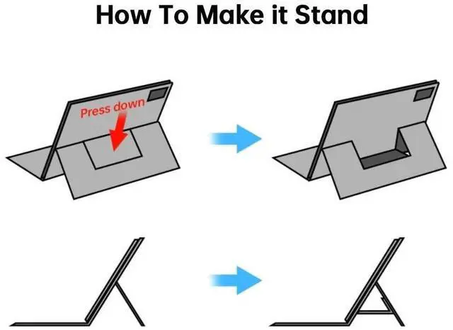 ^^ VERSATILE VIEWING: The built-in invisible stand provides four adjustable viewing angles, allowing you to comfortably watch videos, read, or type in the most convenient position for any situation.