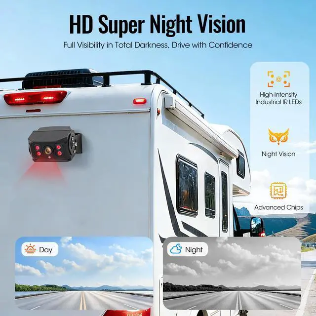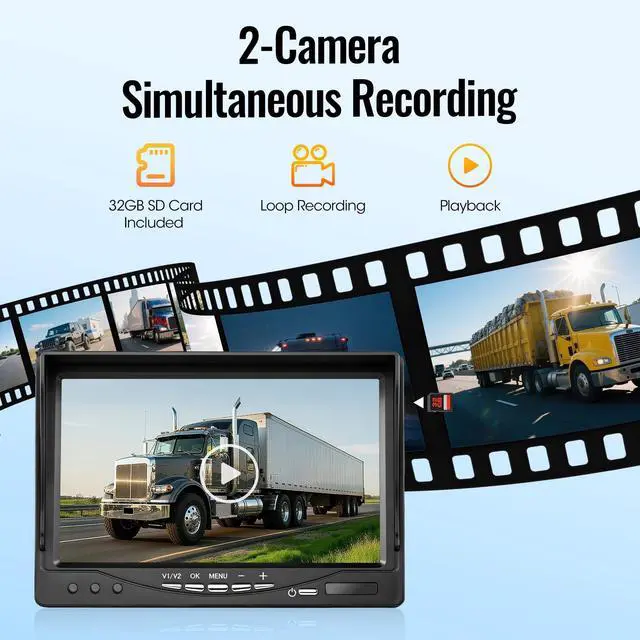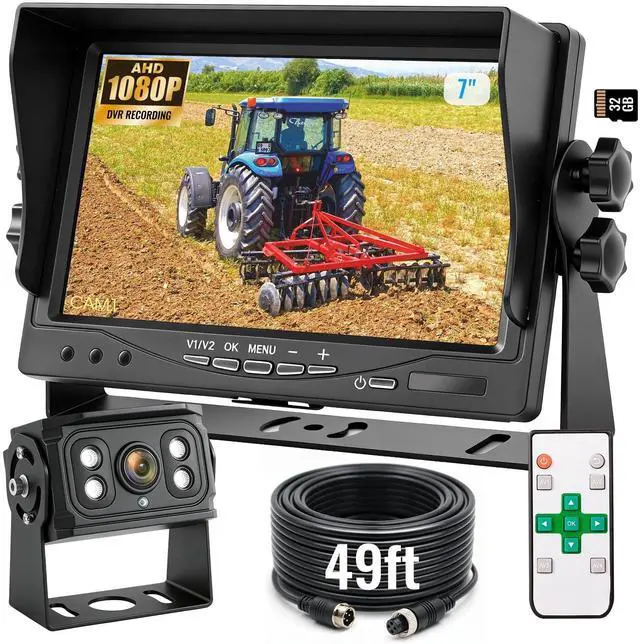 2026 Upgraded Backup Camera SystemEngineered for demanding environments, this heavy-duty system features an all-metal housing rated for 20G vibration resistance and reliable operation from -4F to 158F. Its robust design ensures compatibility with commercial vehicles such as buses, pickup trucks, RVs, vans, and UTVs. It also supports construction equipment including skid steers, excavators, and crane trucks, along with agricultural machinery like tractors, combines, and logging trucks. ^^ 7" HD Monitor with RemoteThis monitor provides dual electrical surge protection for heavy vehicles, delivering stable, zero-lag 1080P video via wired AHD connection.
