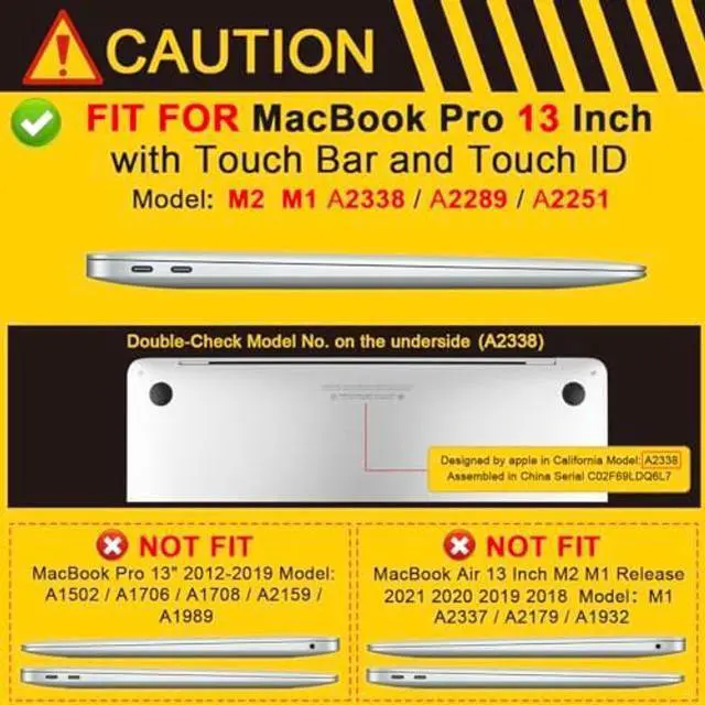 STOP: Engineered EXCLUSIVELY for MacBook Pro 13" 2022 2020 release (model number: A2338/A2251/A2289). Do not force onto other models.