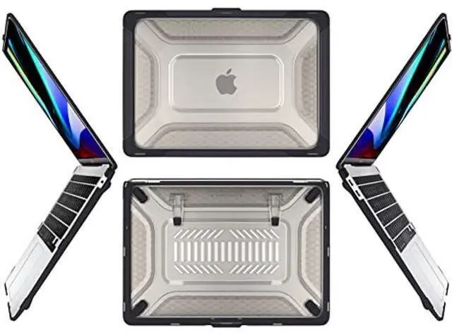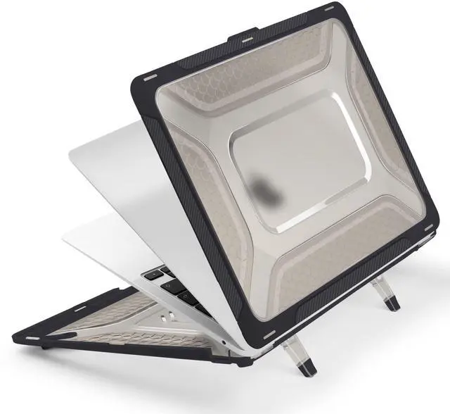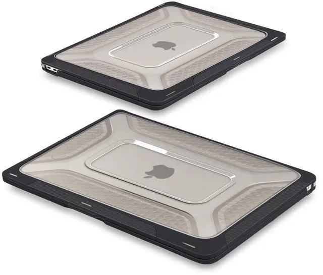 FINGERPRINTS & SCRATCHES: The matte PC back panel features a sculpted honeycomb texture that repels oily fingerprints, minimizes visible scratches, and improves hand grip. It maintains a clean, professional look over time while adding functional grip when carrying or repositioning your MacBook. ^^ PRECISION MOLDING & CENTRALIZED CORE COOLING: The large, centralized rectangular vents work in tandem with the honeycomb structure and elevated stance to maximize heat dissipation from the logic board core. Precision 1:1 laser molding ensures full access to Thunderbolt ports, Snap-on installation with anti-scratch micro-clips allows secure fit and easy removal in seconds.