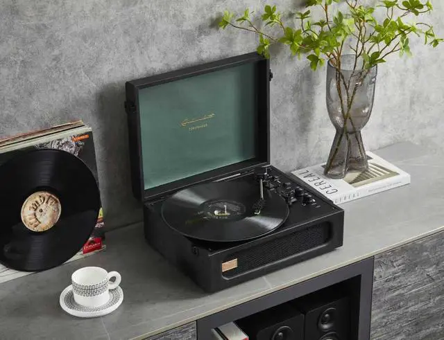 All-in-one record player design with Rocket Moving Magnetic Cartridge and 3-speed belt-drive turntable, offering a complete and high-quality listening experience. ^^ Bluetooth input and output functionality providing convenient wireless streaming and connectivity to external devices, making it easy to enjoy music from a variety of sources. ^^ Built-in stereo speakers, delivering a full and immersive audio experience without the need for additional equipment. ^^ Luxurious leather wrap and gold logo, adding a touch of elegance and sophistication to any room or home decor. ^^ Exclusive Deluxe Edition series with superior craftsmanship in materials and technology, ensuring exceptional quality and attention to detail in every aspect of the product.