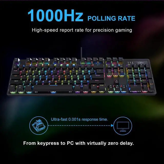 Polling Rate: Delivers ultra-fast, responsive key performance with a 1000Hz report rate for competitive gaming.