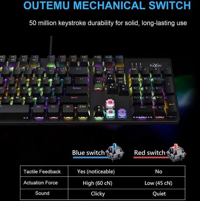Red Mechanical Switches: 50 million lifespan mechanical switches for a solid and reliable typing feel.