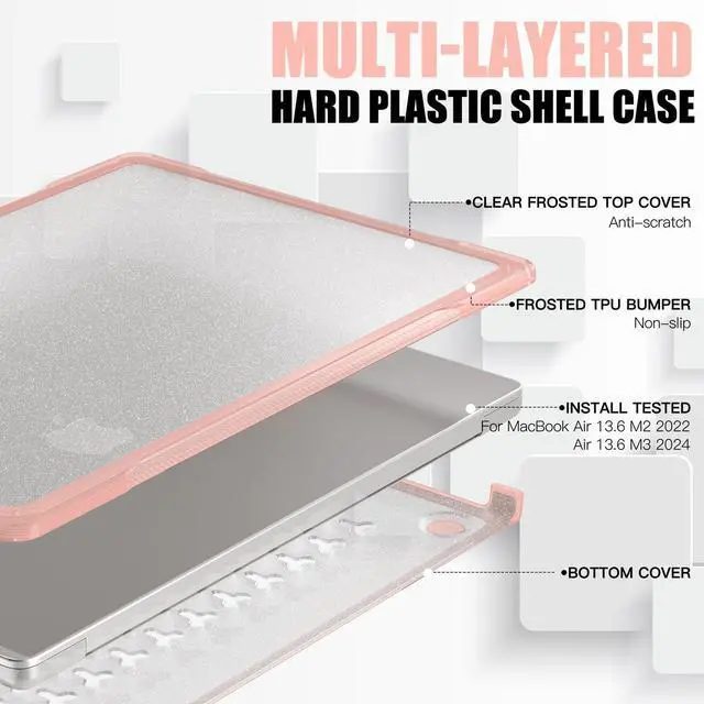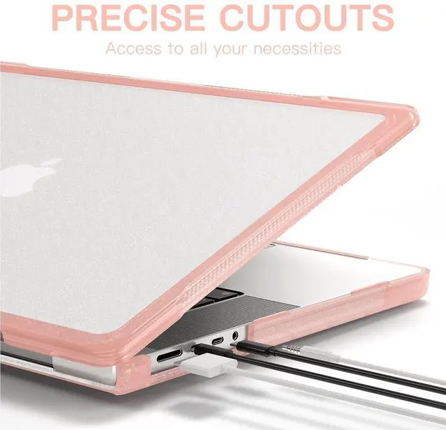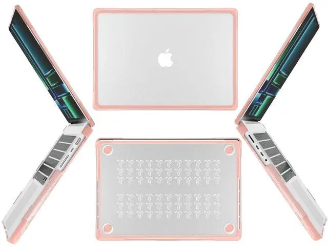 Structure": a scratch-resistant Polycarbonate (PC) hard back fused with a shock-absorbing TPU bumper. The reinforced corners act as airbags for your Mac, absorbing impact from accidental drops and knocks. Its not just a cover; its insurance. ^^ ENGINEERED DENSITY ( 0.8 LBS OF REAL SAFETY) [HONESTY ALERT] Real protection has mass. We prioritized density over thinness to ensures the heavy-duty bumpers are thick enough to actually work. the top and bottom covers together weigh approx. 370g( 0.8 lbs). If you want featherweight slim cases that crack easily, this isn't for you. But if you want a case that feels like a shield, youre in the right place. ^^ TACTICAL GRIP & MATTE FINISH Say goodbye to the slippery, fingerprint-magnet aluminum body. Our translucent matte finish resists oily smudges (perfect for Midnight color users) while preserving the Apple logo's visibility. The edges feature a rugged Carbon Fiber texture, providing superior friction ensures a secure, non-slip hold for one-handed carrying during commutes or field work. ^^ Y-VENT COOLING & PORT ACCESS Designed to keep your pro machine running cool. The bottom features raised rubberized feet and engineered Y-vents to maximize airflow.