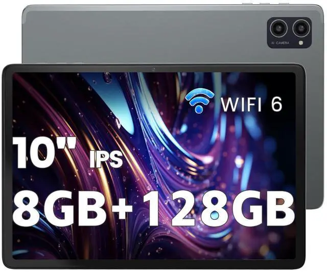 It comes with 8GB RAM and 128GB ROM, and supports up to 1TB TF card expansion (not included), providing plenty of space for apps, videos, photos, and documents. ^^ 6000mAh Battery + USB-C Fast ChargingThe 6000mAh lithium polymer battery provides up to 6 hours of mixed use, including watching videos, reading, browsing, and gaming. With USB Type-C charging, the tablet can be fully charged in about 1.5 hours, while offering up to 72 hours standby time for reliable daily use. ^^ WiFi 6 Dual-Band + Bluetooth 5.0S tay connected with WiFi 6 technology, supporting 2.4GH z and 5GHz dual-band networks for faster downloads, smoother video streaming, and more stable connections.