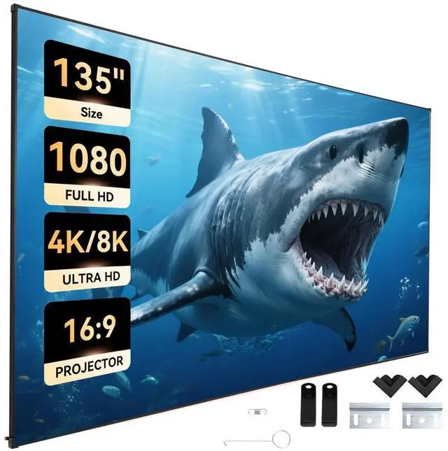 Fixed Frame Projector Screen Ultra-Thin 0.4" Aluminum Frame Wall Projector Screen 135 Inch, Effortless Setup ^^ Perfect for Home Theater, Office Presentations & Outdoor Movies Spring-Loaded Design