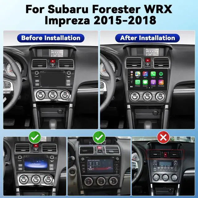 ^^ Installation Tips & Reliable Customer ServiceThis car radio is plug and play for Subaru Forester 2015-2018/Subaru WRX 2015-2018 radio/Subaru Impreza 2015-2018 radio, shown as the Model B, the tuyere has a bright strip, and the radio comes with plug and play wire harness. If your original car center console shown as the Model A. The tuyere has no glitter of 2013 2014 Subaru Forester WRX Impreza, you need other wire harness. Please get online support