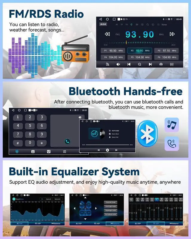 Compatible Car Models: for Subaru Forester WRX Impreza 2015 2016 2017 2018 Upgrade Radio Android 13 car stereo 9 Inch HD 2.5D mirror glass capactive touch screen with 2GB RAM, 64GB ROM storage, built-in WiFi/GPS receiver, Bluetooth, CarPlay & Android Auto voice control, this 9 inch car stereo supports online and offline function, subwoofer connection, EQ Audio setting etc..