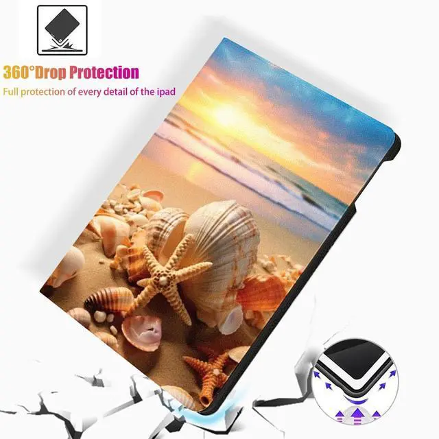RUUHLJLET Case for iPad 10th Generation (2022) 10.9 Inch iPad Cover,Automatic Wake/Sleep,Adjustable Stand Protective Cover for Apple iPad 10.9" - Beach Starfish Shell Sky