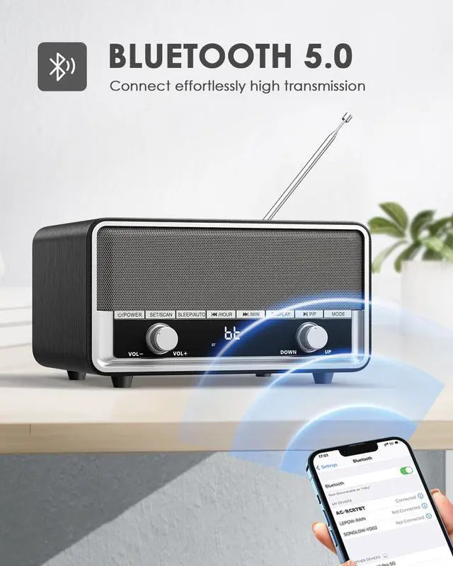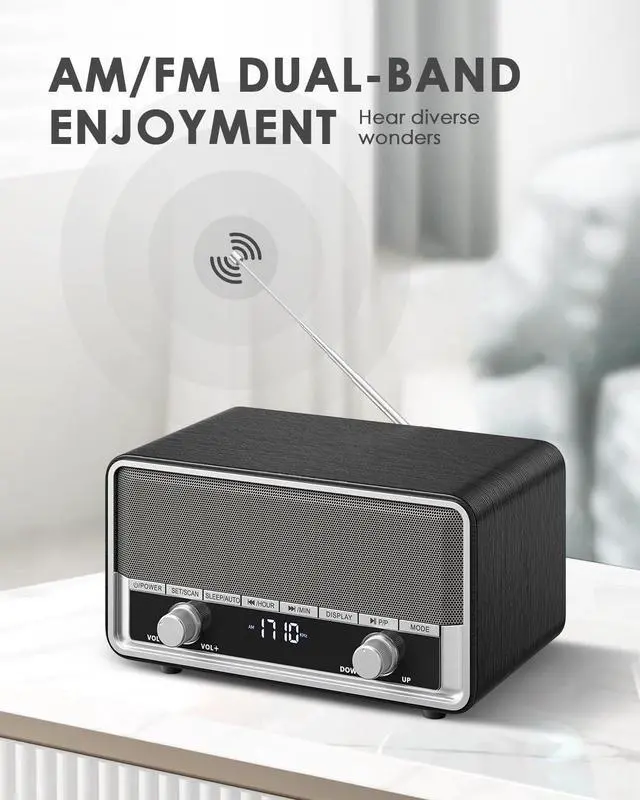 Wood Grain Radio: The Bluetooth radio is lightweight and sophisticated, perfect for compact kitchens, cozy bedrooms, and formal offices. Its retro wood grain appearance not only gives it a classic aesthetic, but also ensures that it blends naturally with a variety of interior decoration styles, adding an elegant atmosphere.