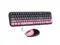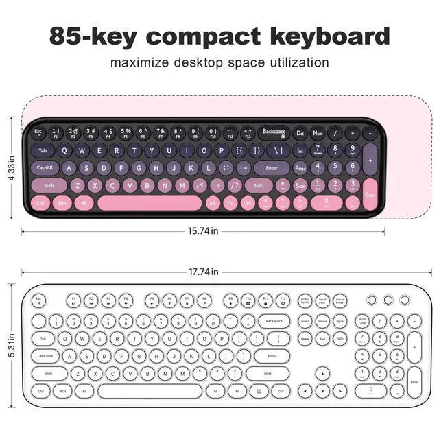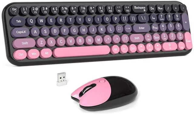 Wireless Keyboard and Mouse Combo, MOWUX Compact Typewriter Retro Round Computer Keyboard, Cute Optical Mouse Wireless, Plug and Play, for Laptop, PC, Computer- Plum Pink Gradient